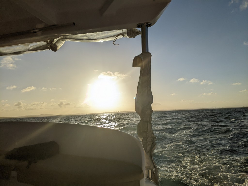 We had a great day – it was disappointing that, due to the winds, going to Peel Island which was meant to be the destination, didn’t happen – so St Helena was the only option – and though we loved doing the history convict tour there a year or so ago, it’s pretty boring as an island destination in itself. But K was keen to walk up the hill to visit the old cemetery again so we did – though it was very hot and having only thongs on was not ideal for my feet. And then we were late back to Raby Harbour this evening (so I drove home wearing my sunnies LOL)…. because of wind/currents but still it was very enjoyable – beautiful boat, charming & funny captain and mate. Highlights: baby stingray in the shallows off the island, a crane (bird variety that is), a sea-eagle, K found teeny tiny wild orchids and the only crocus flowering on the island, Van Morrison all the way back because when the mate asked me about favourite musicians, the Man was top of my list, just hanging together and laughing at stuff, the quite young captain resembling a very cheery Care Bear with terrible Dad jokes which added to the fun… they also do a very lovely lunch and a/tea and the captain has almost completed his tour guide qualifications and they hope to do proper St Helena tours – he was quizzing me about what I did and didn’t like about the one we did LOL.