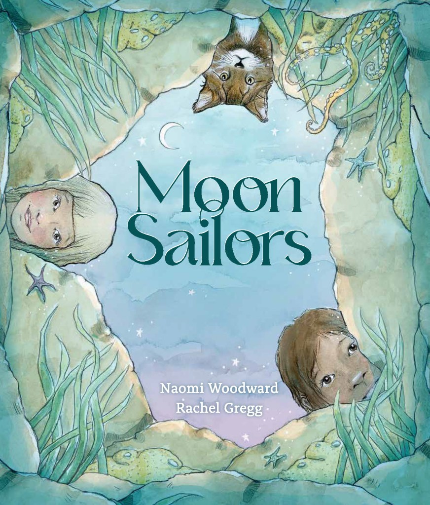 But the two children on their journey of imagination are not just relishing the ocean, they are sailing across the night sky, past the constellations and heading towards Earthrise. The illustrations are every bit as captivating as the text with the subtle shades of ocean greens and blues and the night skies’ indigos, blues and pinks. Each spread is a feast for the eyes and you and your readers will delight in close examination of them picking out delicate details.