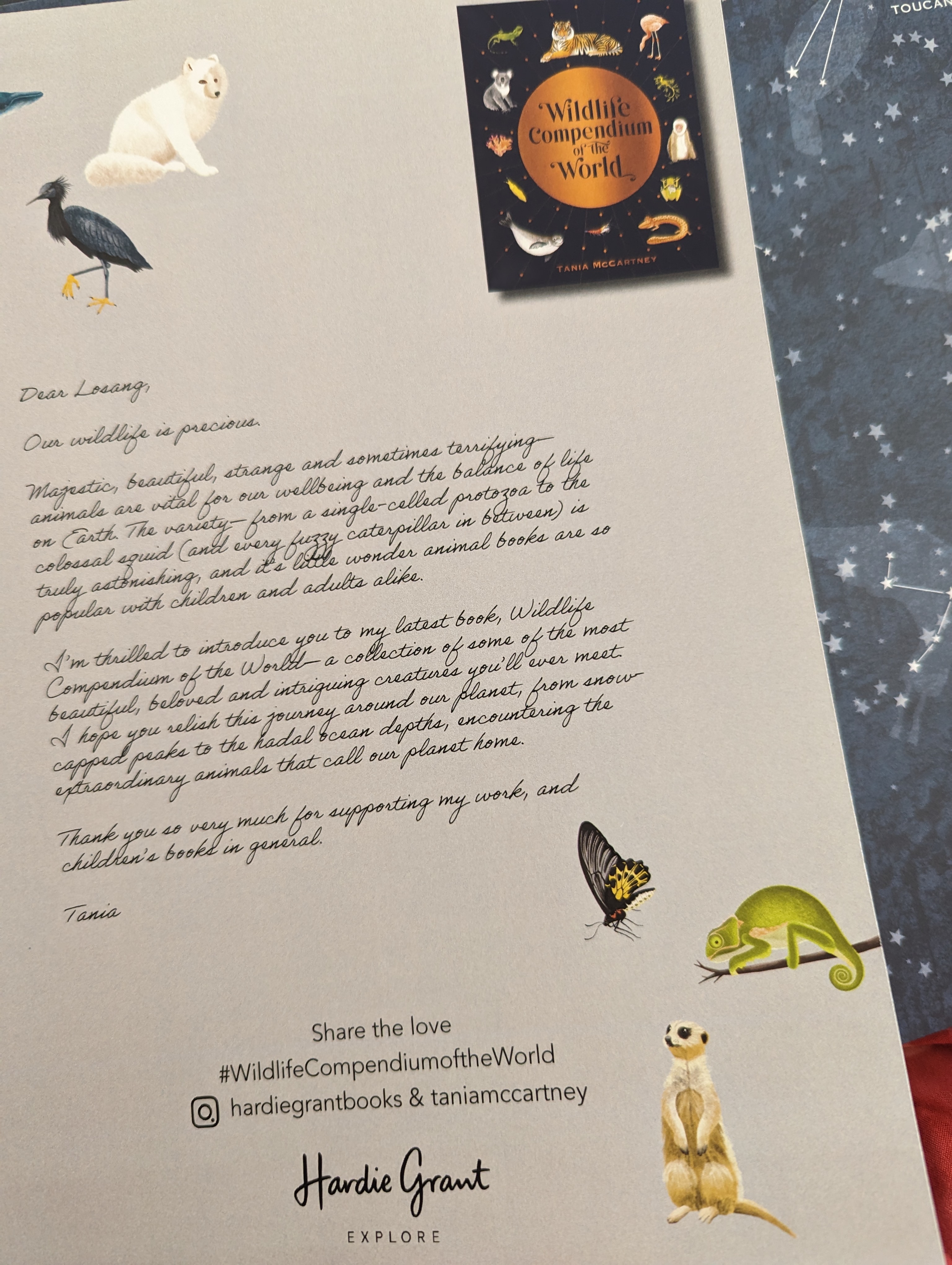 There are special touches which makes this a true stand-out (as with all Tania’s books). The endpapers are a rendition of the night sky and the ‘animal’ constellations, which I absolutely love and which, I believe, will encourage young readers to realise that we are one world, and that same sky (although it may look different depending on locations) is above us all. Tania’s dedication is very delightfully a homage to the content of the book, and I loved my personal letter which accompanied my copy.
