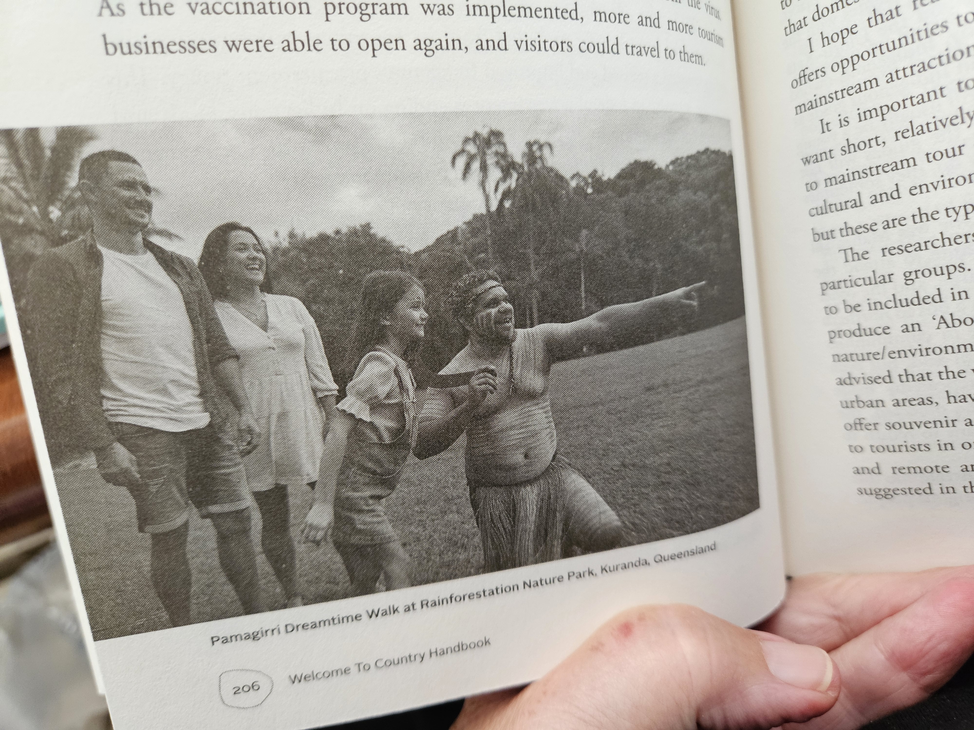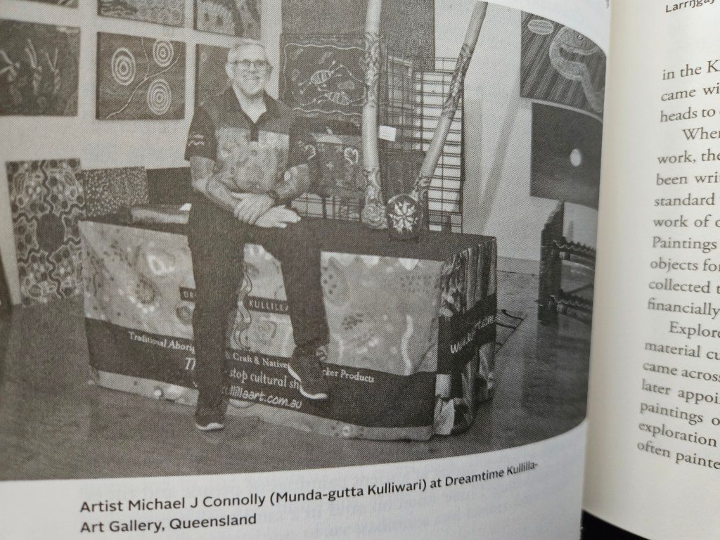 It is the type of ‘enquire within for all things’ almanac, that one can dip in and out of, cherry picking the topics of most interest. It is amply illustrated, in the main by black & white photographs, but with a few coloured plates as well. I was particularly pleased to find a photo of local man Michael Connelly (Munda-gutta Kulliwari), of Dreamtime Kullilla Arts here in Redcliffe, and also a snap of the Pamagirri Dreamtime Walk in Kuranda, a place I took The Kid to not long after we lost her mum, with the same man demonstrating boomerang throwing as helped her.
