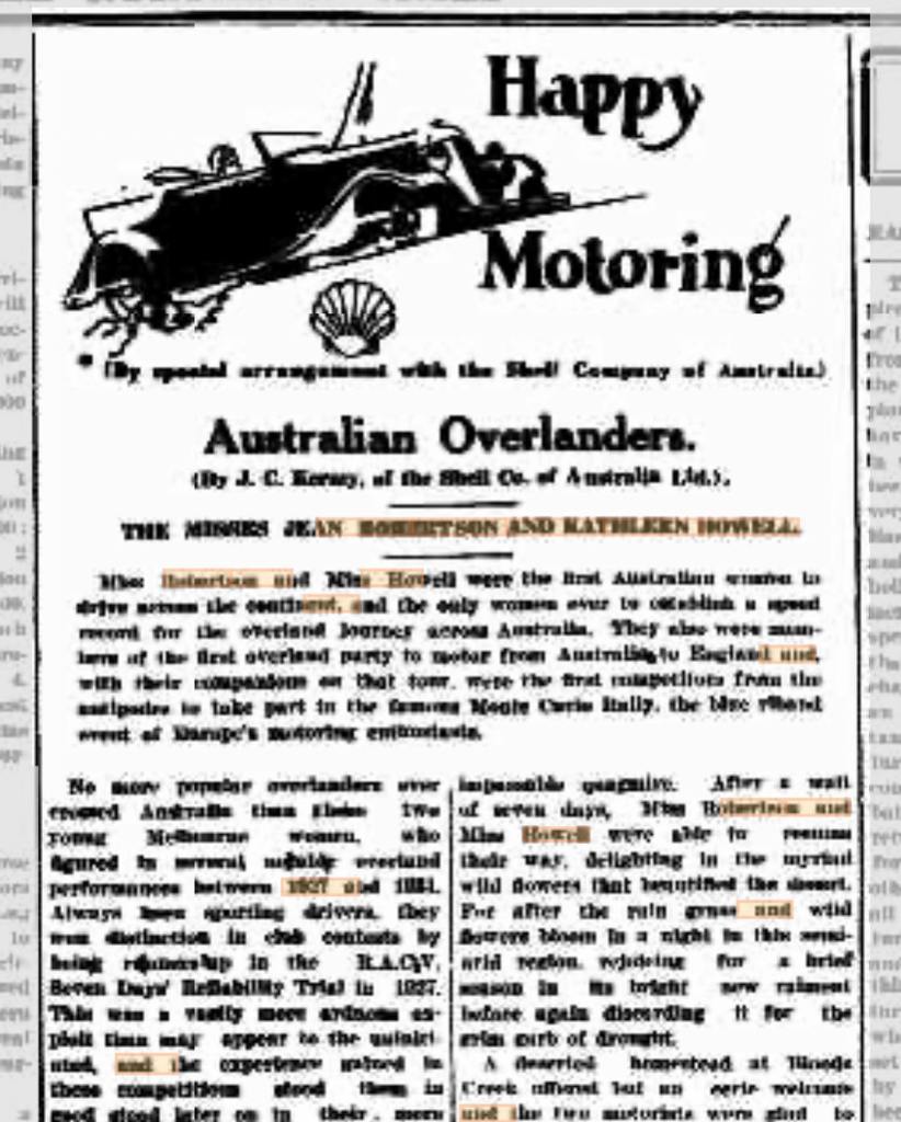 At a time when women (aka “ladies”) rarely if ever drove a car, Jean and Kathleen determined to beat the land speed record from Perth to Adelaide, byset months earlier by Norman Smith, in the face of scorn, ridicule and utter disbelief. Not only did they beat Smith’s record, but they did it by five hours – sorry, I’ll repeat that FIVE HOURS! And then, not content with that, went on to create more motoring history and records, around the world.