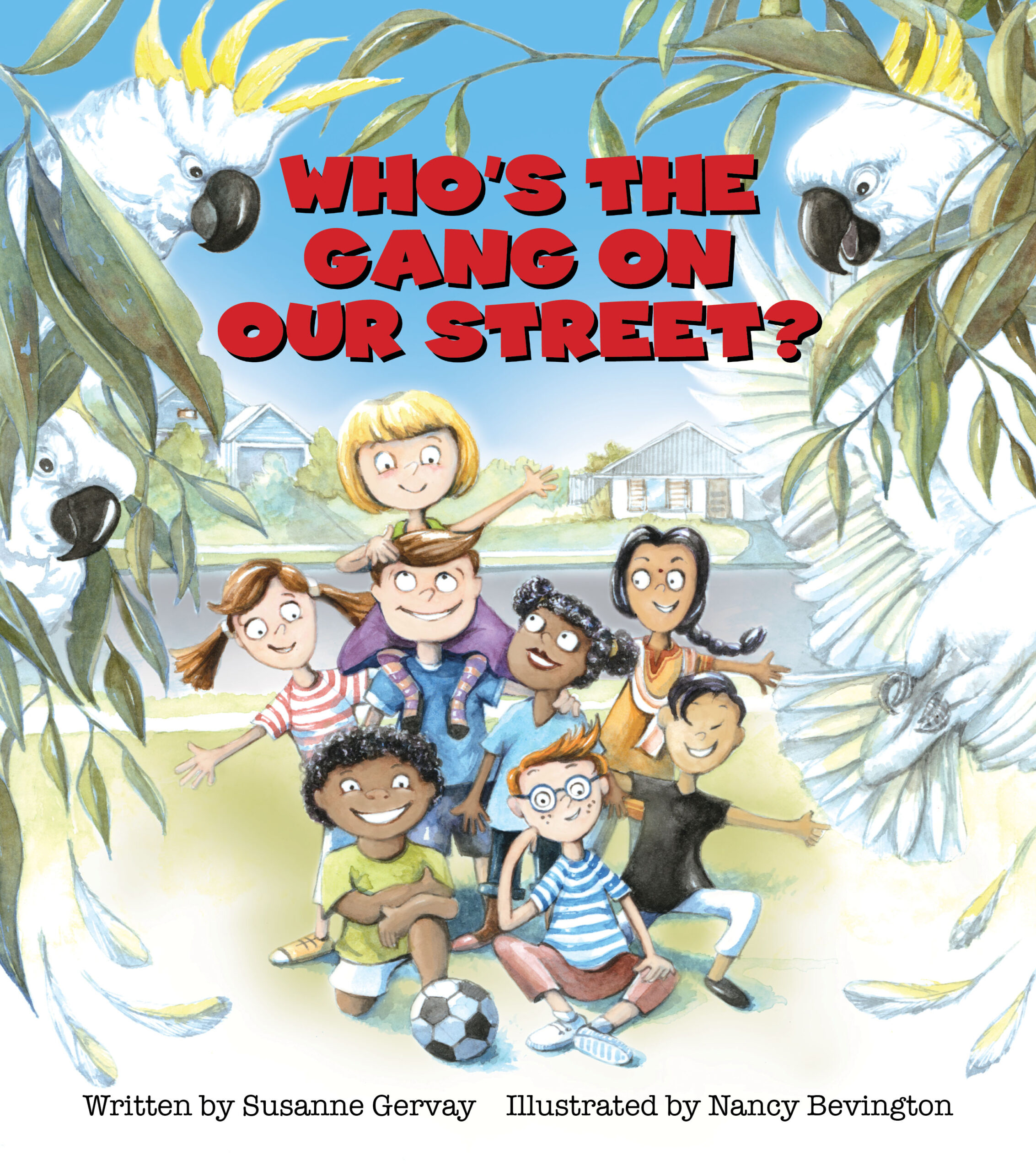 I had such great fun romping through the book, and then considering how it could be used in a classroom or library. Its obvious parallels to a bunch of kids playing and racketing in their street, and exploring how the habits of cockatoos make them so endearing and – yes,sometimes naughty- was just a hoot (or perhaps a squawk?) to think about. And, while most would presume that these birds are plentiful, the fact is that the sulphur-crested cockatoo is now listed as critically endangered, following rapid decline (80%) over the past three generations – largely because of trapping for the caged bird trade as well as destruction of habitat. Susanne’s determination to bring light to this problem as well as focusing on these amusing birds’ antics was a primary inspiration for this absolutely gloriously fun book.