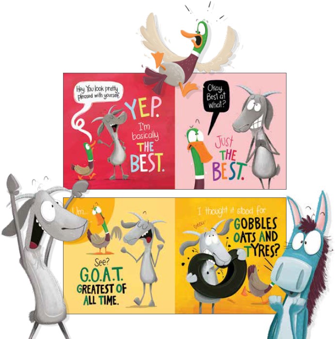 Goat thinks he is the Greatest Of All Time, and thinks everyone else is nowhere close, for example, Duck = Deadly Underwater Crumb King. It is typically Temple crazy, and the goofy illustrations from Rebel Challenger are a perfect match for the text (and the end papers are SUPER!). Of course, if you want to bang on about acronyms, this is a great opportunity to do so, and I’m sure you and your kiddos could come up with plenty, not just confined to animals.