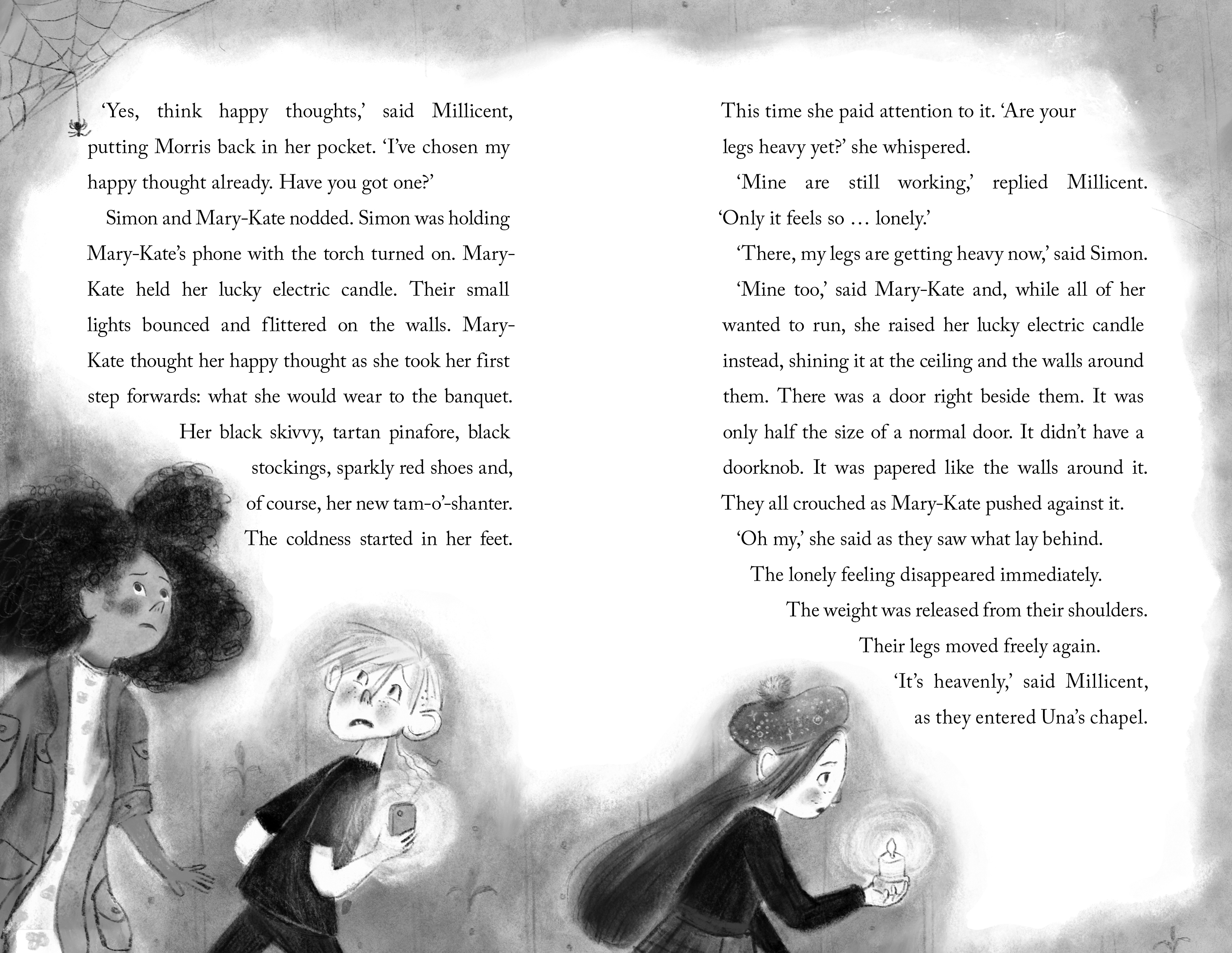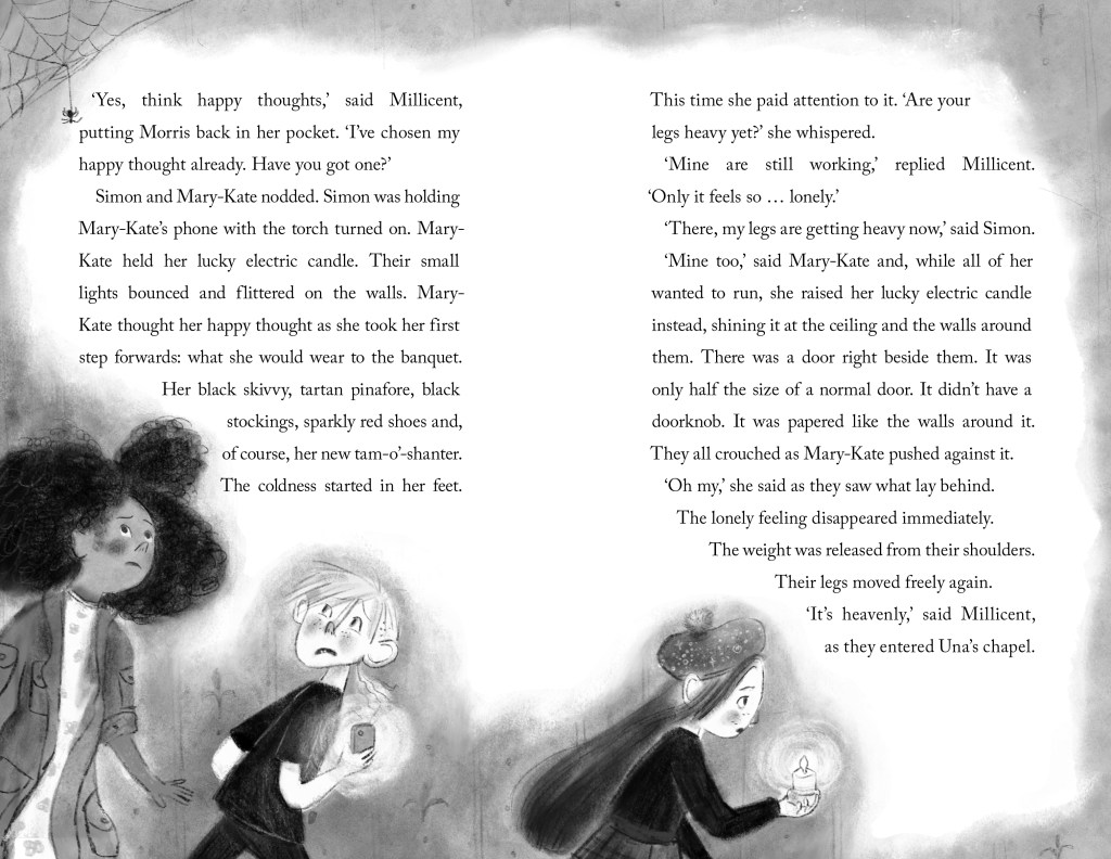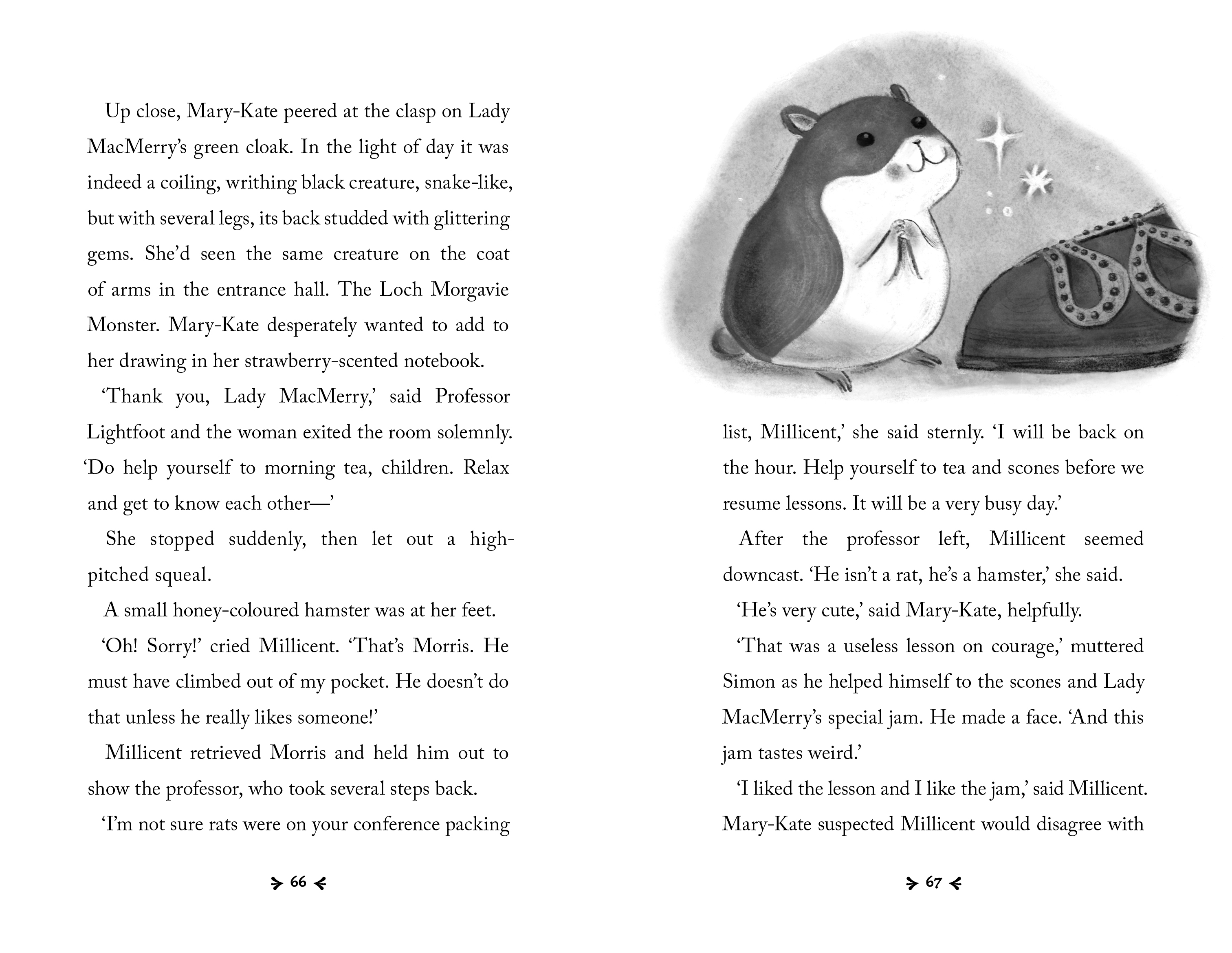 Yet that’s exactly how it pans out. Mary-Kate and new chums, Millicent and Simon, may be the youngest and newest recruits to the Monster Hunters society but they are no slouches when it comes to using their wits, creativity, and Mary-Kate’s organisational skills (OCD style). They know there is a mysterious serpent-like creature rumoured to live in the nearby lake, but even more of a mystery is the rumour of the Cù-sìth creatures once found at Bonkillyknock, but long hunted out.
