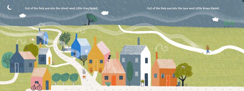 Whether we are big or small, old or young, we all have moments when our tempers flare up and we might say things we really don’t mean, and so it is with Little Grey Rabbit and Little Brown Rabbit. Of course, they’re both steaming mad, and they thump their separate ways, but once they’ve had a chance to cool down they each realise what’s missing from their favourite space. And they find a way to make peace and reconcile.
