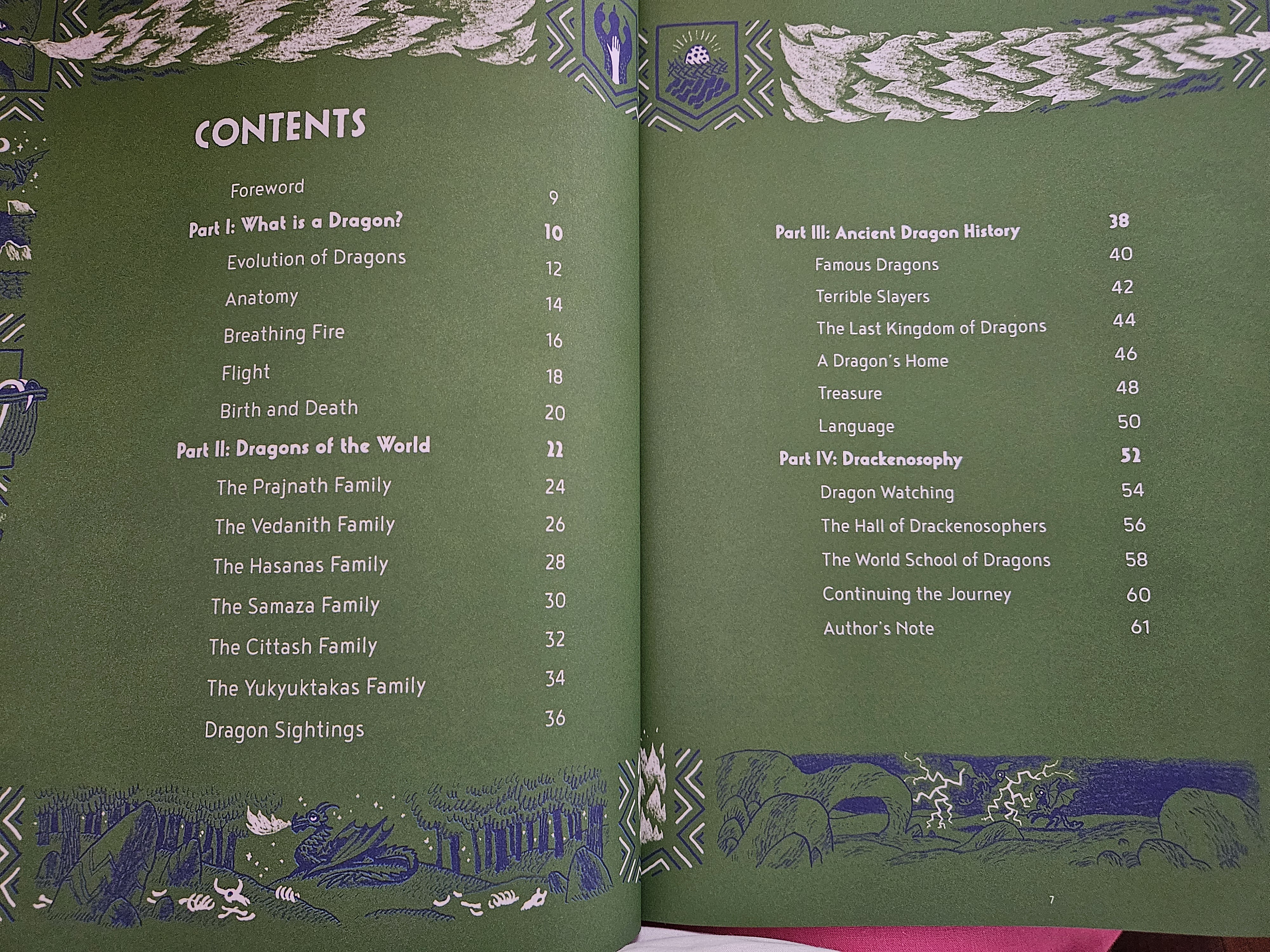 And as you can see by the extensive contents information, there is a veritable treasure trove of information that will satisfy every dracophile. Whether it’s breathing fire, various species, treasure hoards, flight vs flightless, reproduction or the studies of dragonology, it’s all here with glorious illustrations from Alexander Ulkin.