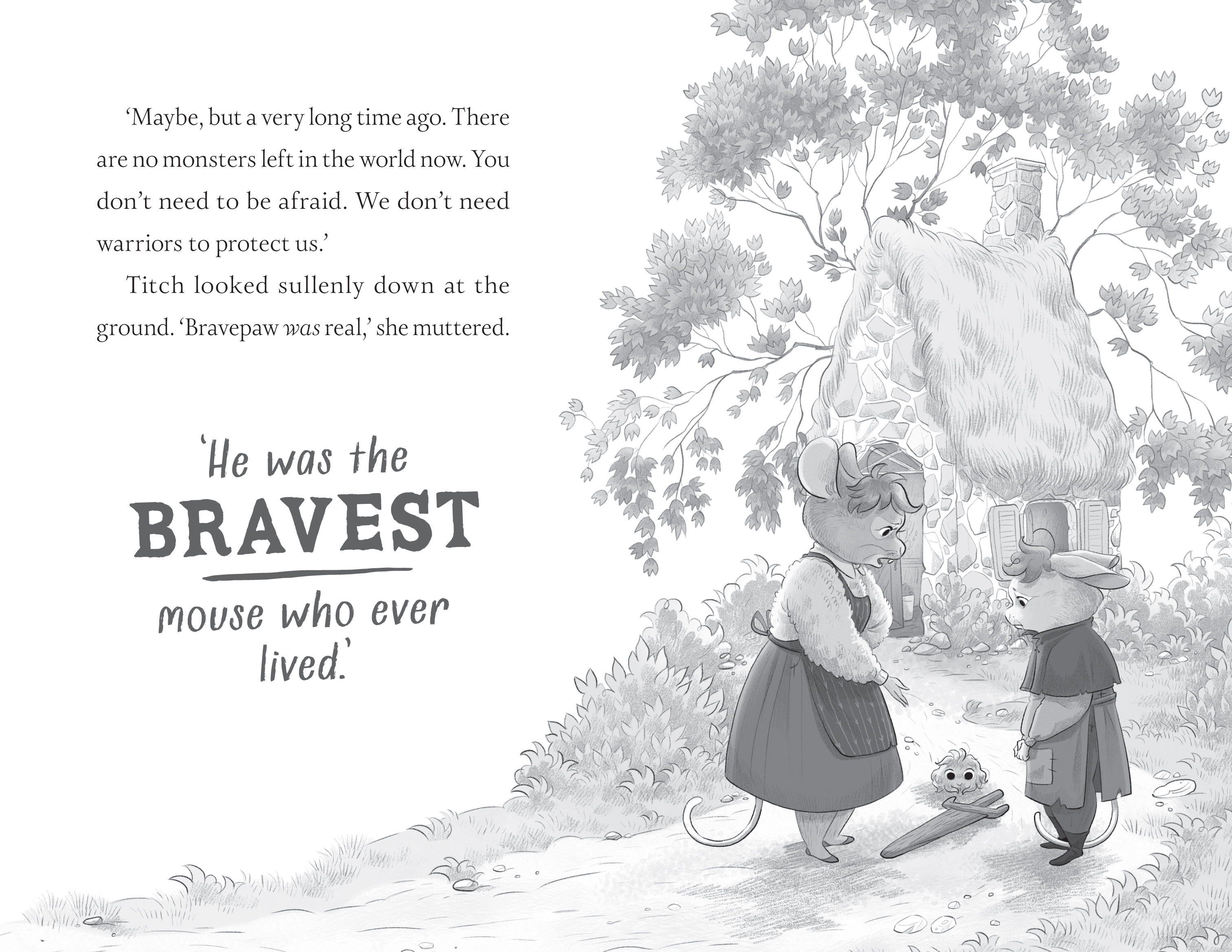As the Prince heals, and there is more danger with which to deal, it becomes apparent that Titch is the only one able to wield the Heartstone, the powerful gem set in the staff, and therefore, she is the first Bravepaw since Thistle Straightwhisker of the old tales.