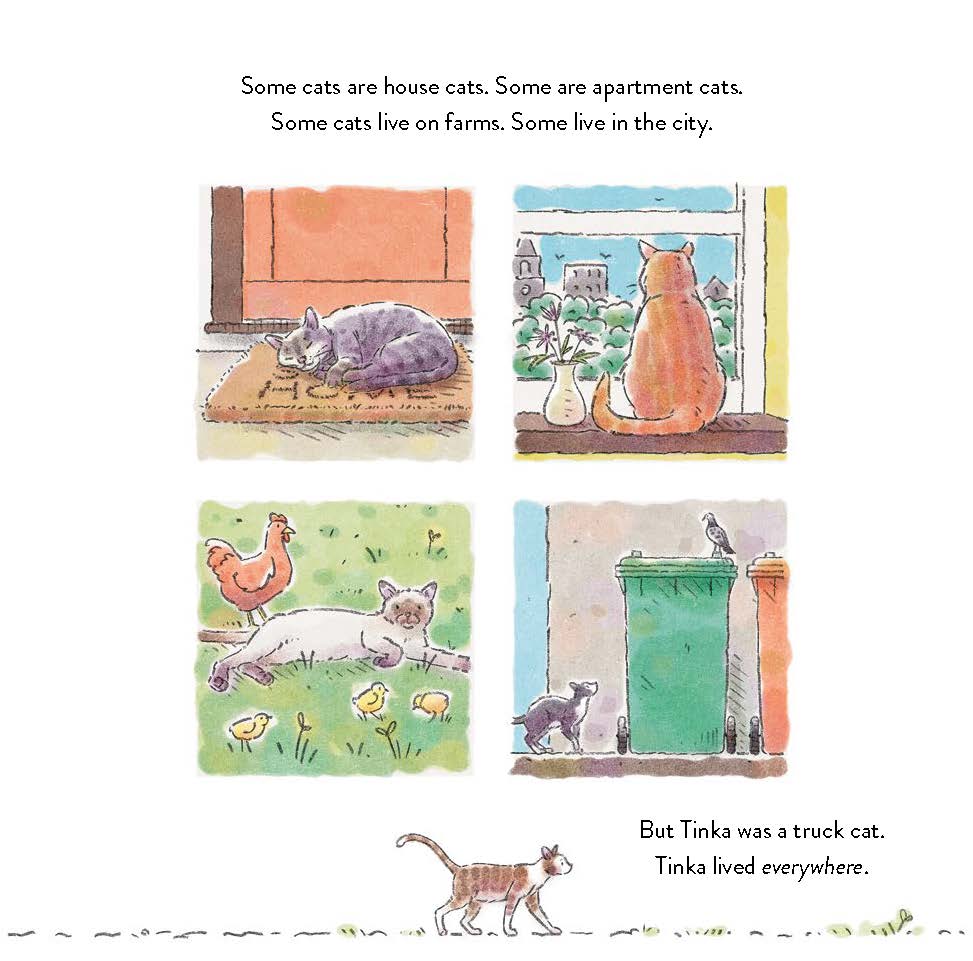An incident in which the cat becomes separated from both cat-guardian and truck, sees him meet a bakery owner. Truckie and baker coincide, and cat is reunited with his original guardian but together they all forge a new family. See – simple! But oh how much deeper and richer is this story?