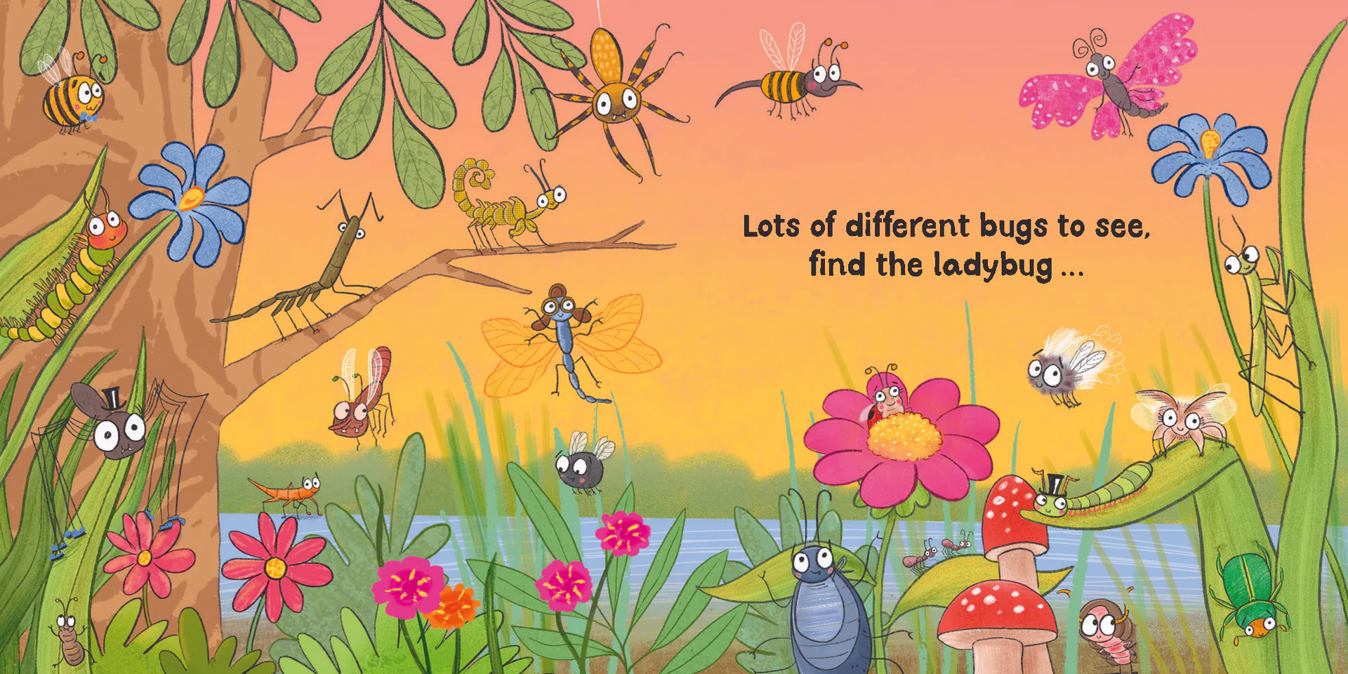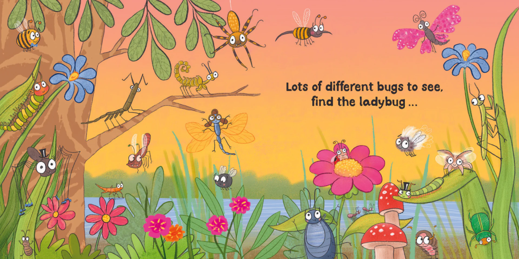 It is fun and colourful, full of humour with that deliciously bouncy rhythm that makes it pure joy to read aloud. The final page with its wonderful catalogue of insects including, without doubt, the only attractive cockroach I’ve ever seen, shares some commonly seen species such as daddy long legs and bee, along with some not so usual like the spiny leaf insect and the wooly aphid.