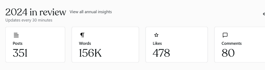 First of all, I want to thank everyone who’s paid a visit to Just So Stories in 2024, which has had the most gangbuster result in all its eleven years! Quite an increase in several areas and for a blog that has grown organically, with very little ‘promotion’ other than my own SM, but basically via word of mouth, I am delighted. Woo hoo!! ๐๐ thanks to you guys!