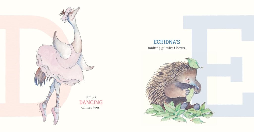 Just as this one does as it provides the little readers with a wide cast of our native fauna, each engaged in a fun or tricky activity while Koala seeks out a playmate. Poor Koala! Everyone else is busy – playing mandolins and violins, or jumping puddles and wanting cuddles or fishing in the creek and playing hide-and-seek and on it goes, right to very end of the alphabet when little Zebra Finch most definitely wants to play! Hooray!