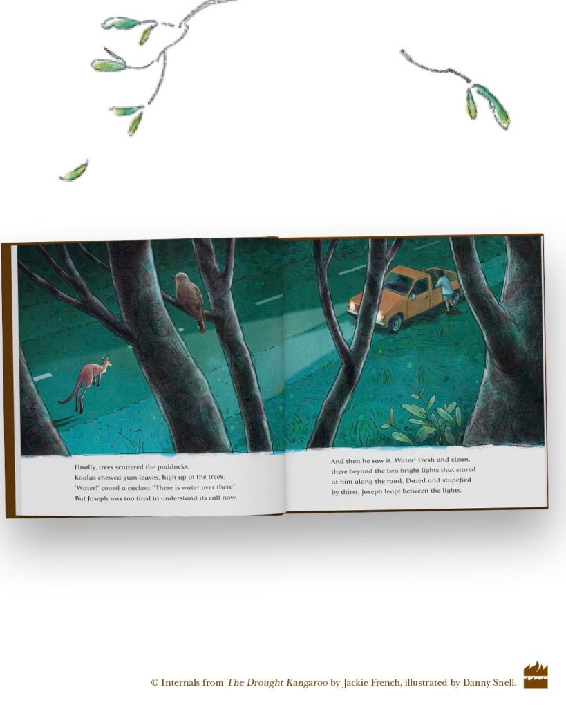 Young readers will be enthralled by this narrative non-fiction, told with its antropomorphic aspects, and they will love sharing any stories they have of similar situations, as well as any encounters with kangaroos. Danny Snell’s always evocative illustrations which subtly, through colour changes, and the palette used convey much of the background learning to be had, are a joy. Joseph and his determination, decision-making and dominance are boldly enhanced with these.
