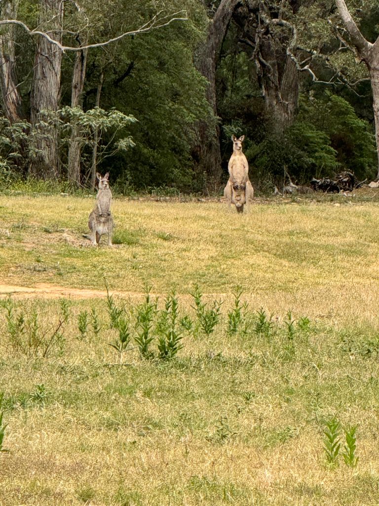 Kangaroos being as they are, there is suspicion of a newcomer, a reluctant acceptance, and, eventually, a tussle for dominance as Joseph becomes the boss of the mob. Jackie’s part in Joseph’s rescue at one point forms a pivotal moment in the narrative and leads to the ongoing tale (tail?) of this ‘roo, who now regularly appears at Jackie’s home in the valley.