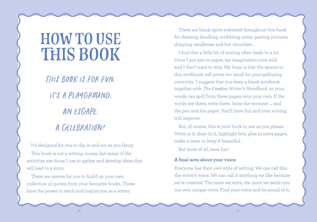 For those who are looking to hone their skills or expand their repertoire, this is a perfect gift book but it will also serve to be in your library collection for inspo too. It is a very practical and also fun work book so that your budding wordsmiths [my favourite of all the writerly nomenclature] can either work their way through it or just dip in and out according to whim or mood.